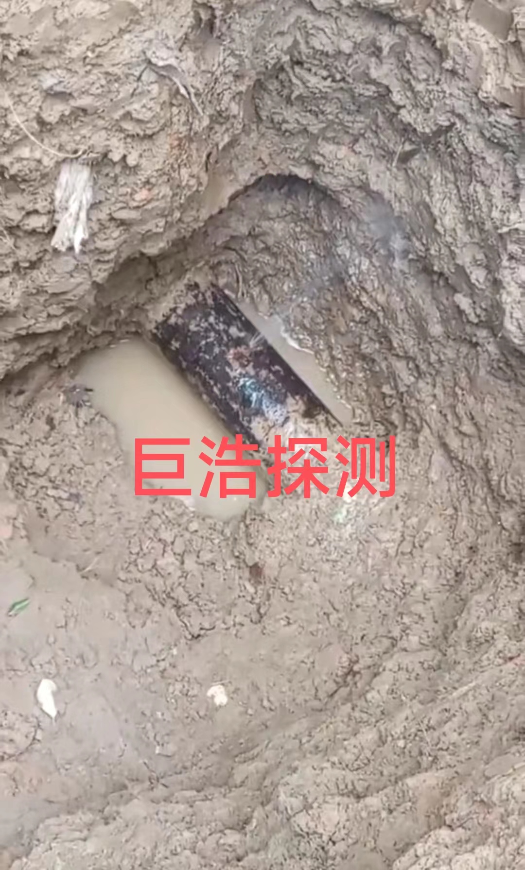 此處管道漏水點(diǎn)為DN200無縫鋼管,管身腐蝕導(dǎo)致管道破損產(chǎn)生的漏水問題,管道埋深為2.8米左右。(下圖)