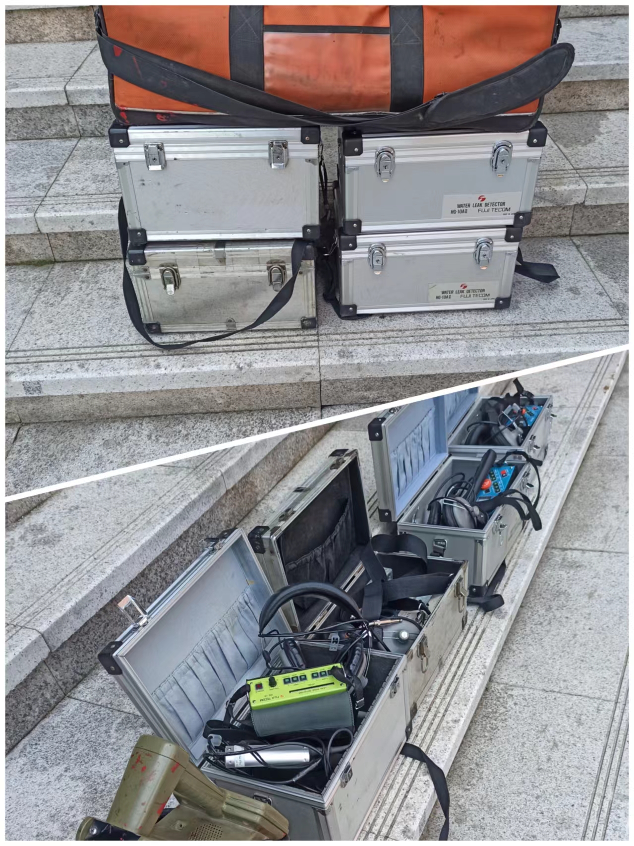 對漏水聲波異常,采用復(fù)合相關(guān)儀進行數(shù)字相關(guān)探測確認。首先根據(jù)已有的管網(wǎng)資料設(shè)計好所探測管段,確定相關(guān)儀傳感器所擺放位置,并設(shè)置好傳感器,距離、管徑、材質(zhì)等參數(shù)準(zhǔn)確輸入進行相關(guān)探測。根據(jù)探測結(jié)果對關(guān)鍵管段進行重復(fù)探測,以準(zhǔn)確確定漏水點位置。重復(fù)探測時傳感器必須相互調(diào)換,比較探測結(jié)果以減小距離誤差,從而得到準(zhǔn)確的漏水點定位。